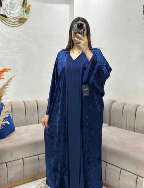 طقم القفطان الملكي: كريب حرير ومخمل فاخر